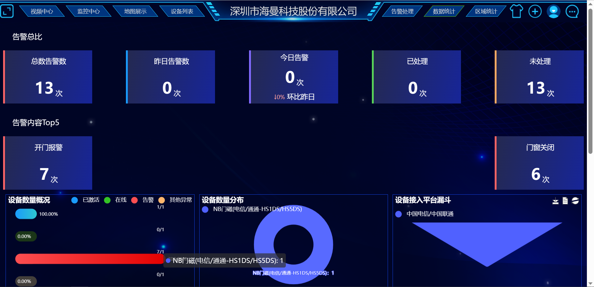 平臺(tái)的首頁(yè)展示包含監(jiān)測(cè)設(shè)備的總數(shù)、故障數(shù)統(tǒng)計(jì)、設(shè)備在線數(shù)統(tǒng)計(jì)、報(bào)警曲線圖、報(bào)警時(shí)段統(tǒng)計(jì)、最新報(bào)警信息等。